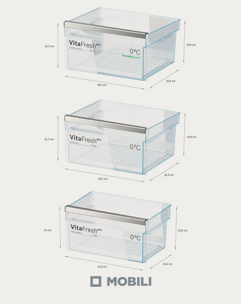 - Tecnología VitaFresh Pro: Conservación a 0°C con humedad controlada